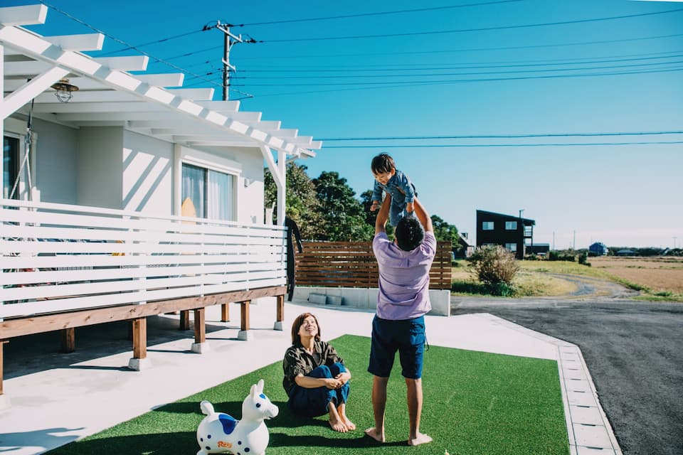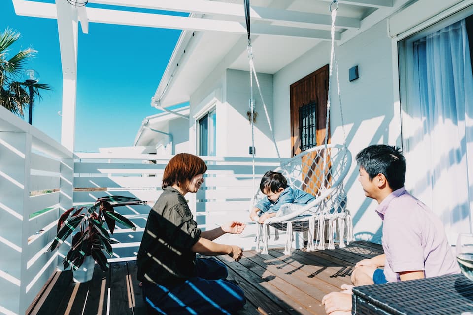 まだ小さいお子様がいらっしゃるご家族向けに、子ども向けのおもちゃも多数ご用意しております。晴れた日には、ウッドデッキにあるマクラメブランコや、建物前の芝生で遊ぶこともできます。